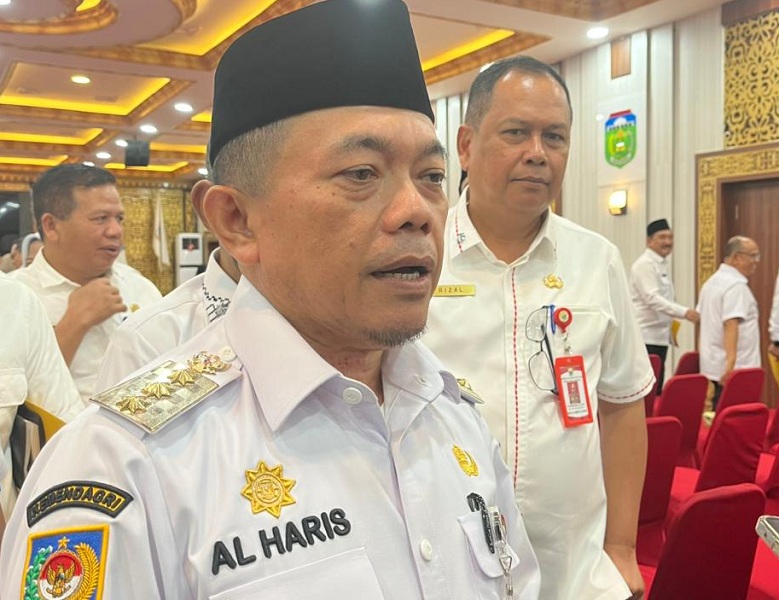 Gubernur Jambi, Al Haris, memberikan keterangan terkait penyebab air Danau Kerinci menyusut. -ist-