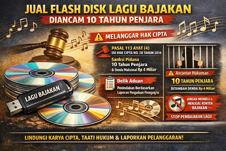 KEJARKABAR.COM, JAKARTA – Penjualan flash disk, yang berisi lagu-lagu bajakan, melalui platform marketplace, ternyata ada sanksi pidana.