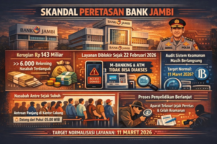 Hingga memasuki pekan kedua sejak insiden peretasan pada 22 Februari 2026, layanan Mobile Banking dan ATM Bank Jambi masih diblokir.